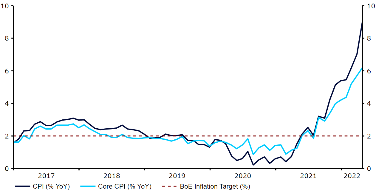 Wykres 1: Inflacja w Wlk. Brytanii (2017 – 2022)